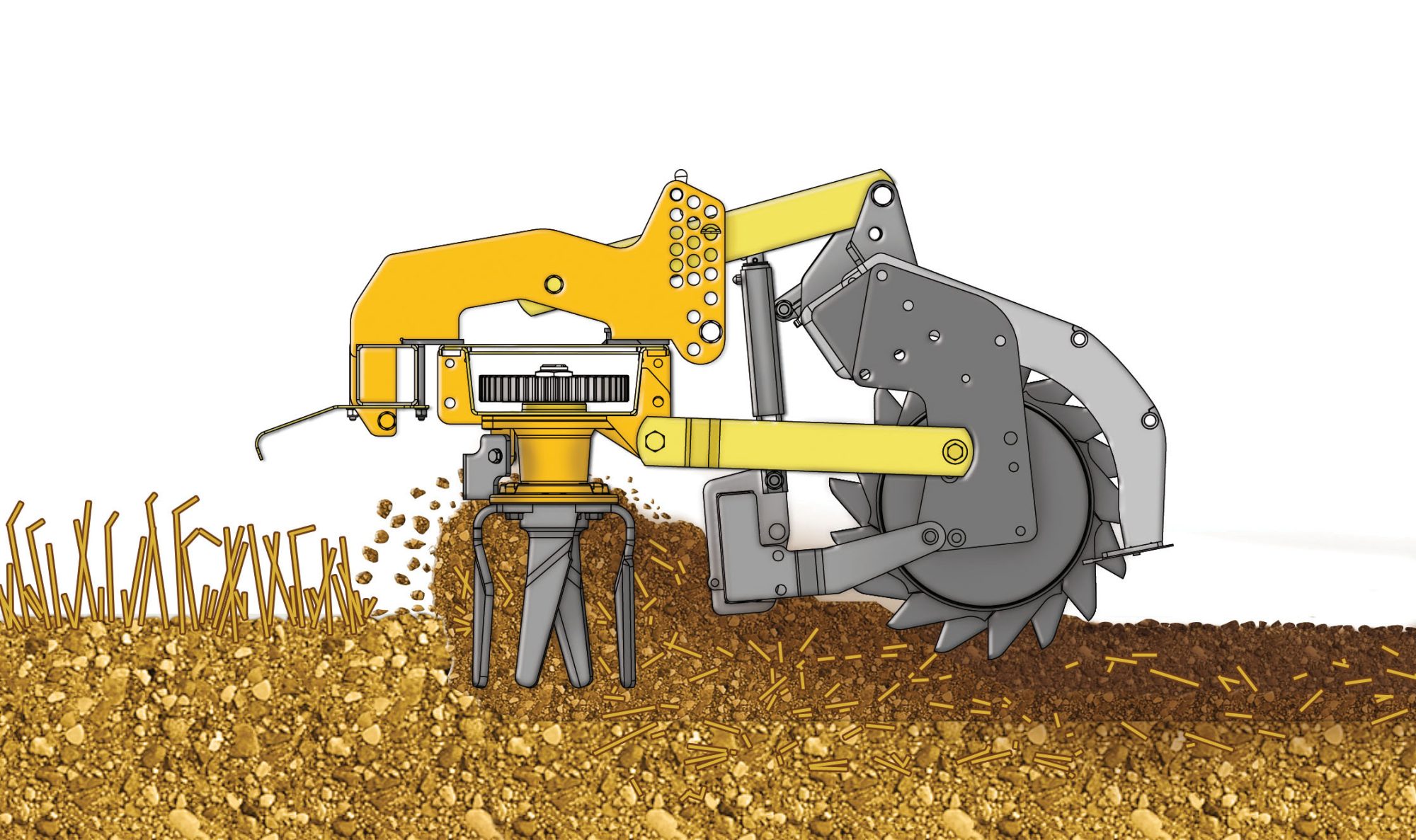 Auto-level is a further innovation on all Alpego power harrows. This feature ensures that the seedbed is perfectly level behind the machine by the rear-levelling bar that is attached to the roller, and not the machine by means of a parallelogram linkage. This means the levelling bar can work independently with the power harrow and tractor, so any irregular ground contours are backfilled with soil resulting in an even surface for planting. this is particularly appreciated when you lift the machine out of work on your headlands, as there is no ridge of soil left behind.