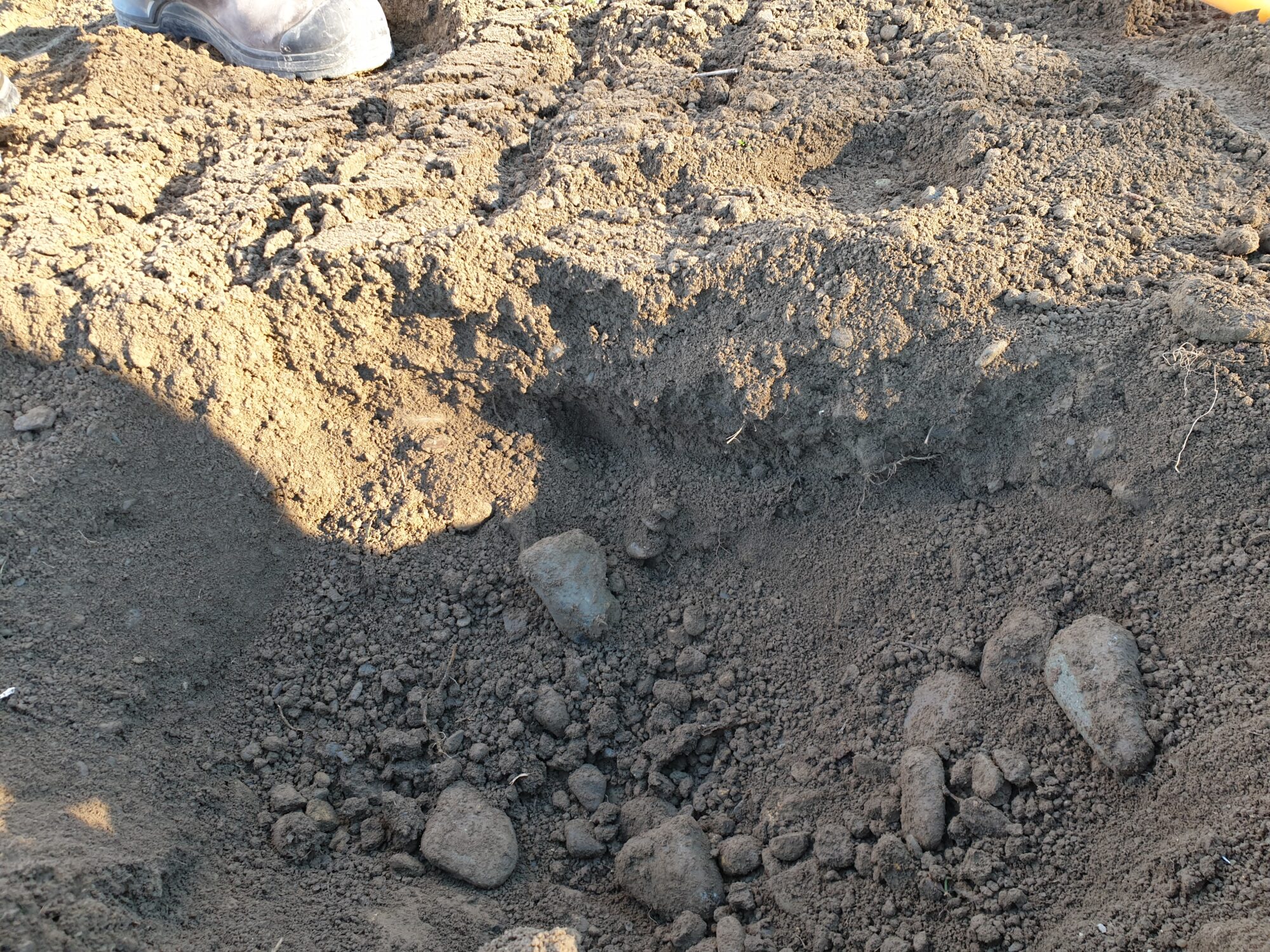 Soil profile shows stones at the base of the seed bed and fine soil in the seeding zone on top after cultivation with the Alpego INVERSA