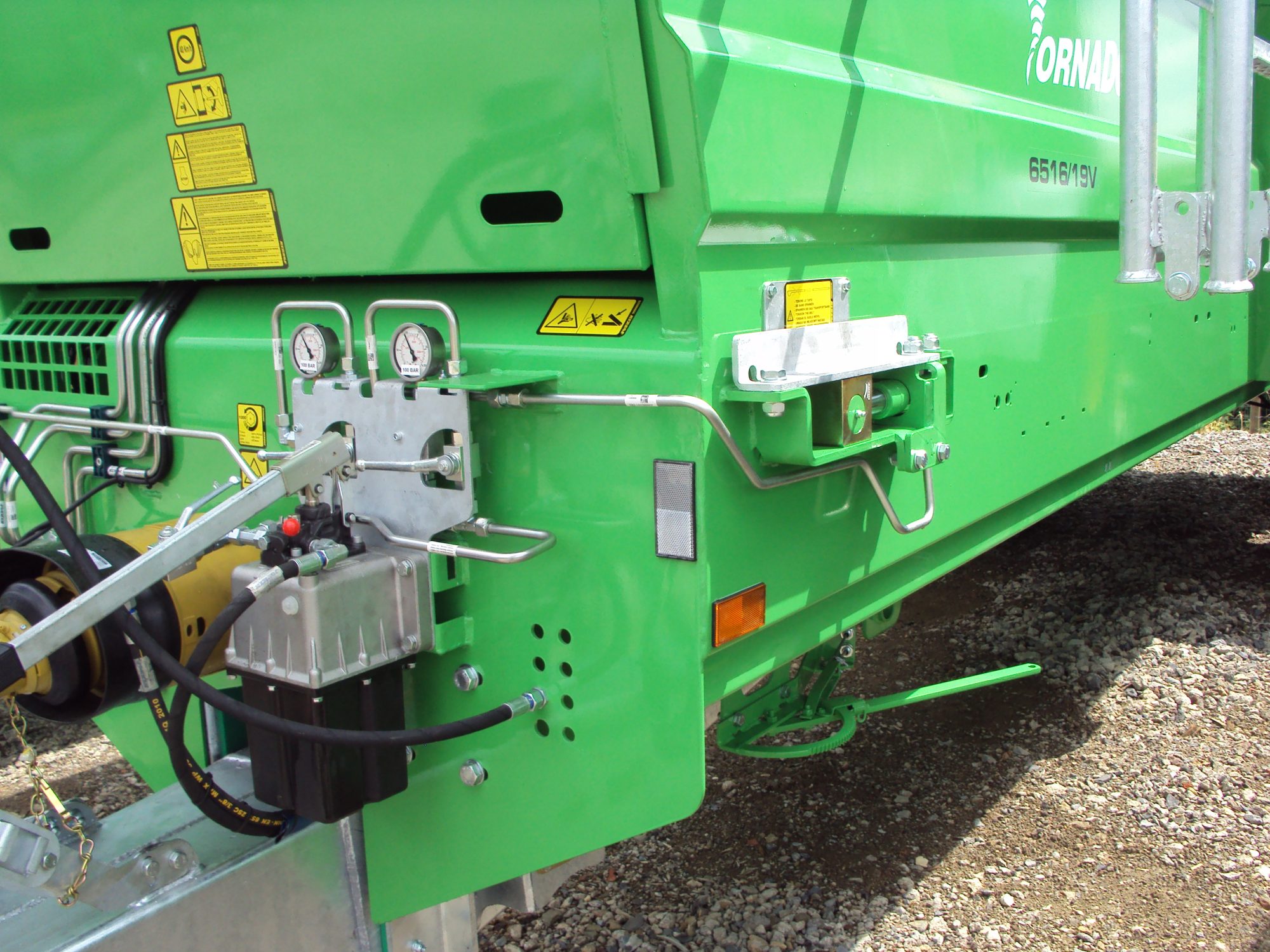 Compared to its predecessor, the body of the new generation Tornado is now more tapered and the side walls are smooth to make emptying and cleaning easier. The rear side has also been widened to increase the spreading regularity. The hydraulic pipes are now integrated into the upper body edge strip and therefore protected from any contact with the material. Finally, the mudguards have been redesigned with a 45degree inclination to avoid material heaps on the machine *Mudguards are an optional extra for NZ
